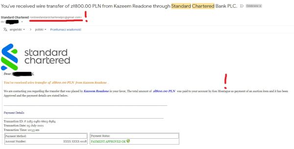 po ustaleniu detali transakcji wysyłają nam fałszywe potwierdzenie dokonania płatności – najczęściej z banku, który nie posiada swoich oddziałów w Polsce. Brak księgowania tłumaczą przelewem zagranicznym i czasem oczekiwania wynoszącym kilka dni.