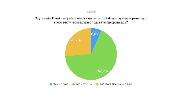 2. Czy uważa Pan/i swój stan wiedzy na temat polskiego systemu prawnego i procesów legislacyjnych za satysfakcjonujący?