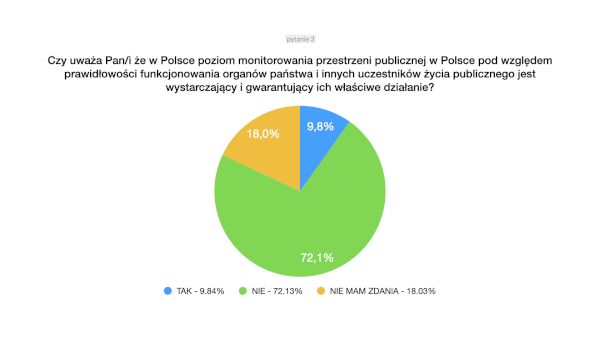3. Czy uważa Pan/i że w Polsce poziom monitorowania przestrzeni publicznej w Polsce pod względem prawidłowości funkcjonowania organów państwa i innych uczestników życia publicznego jest wystarczający i gwarantujący ich właściwe działanie?